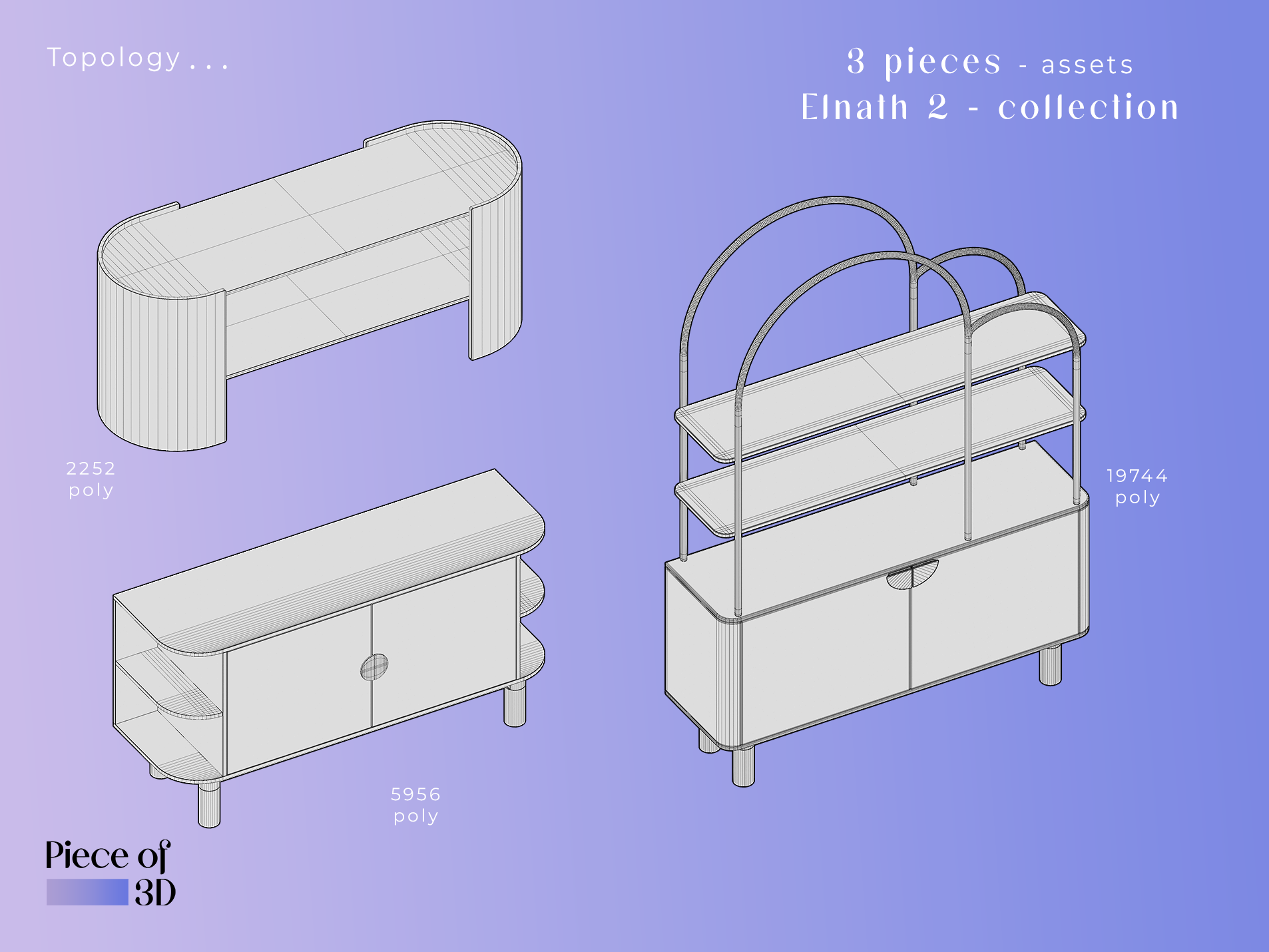 One file items with 3 pieces of the collection. Ready to use on : .Blend (with assets Library) /.SKp+Vray / .3Ds Other formats : .stl / .obj / .fbx
